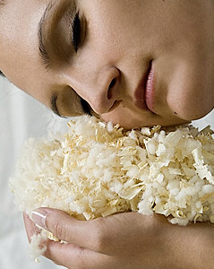 Füllung: 50% Zirbenflocken, 50% Naturlatexstäbchen
