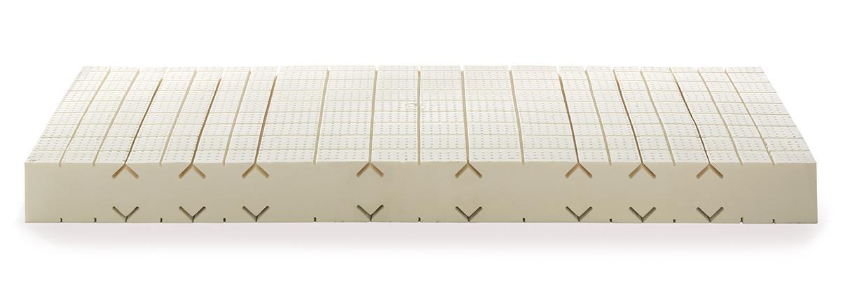 100% Naturlatex (Höhe 15) mit 7 Zonenschnitten profiliert und extra Einschnitten im Schulter- und Hüftbereich