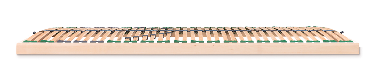 Federholzrahmen PHYSIOFORM Pro S starr Dormiente Massiver, unbehandlelter Buchenholzrahmen, 40 Federleisten aus Buchenschichtholz in 20 Tandem Federelementen, individuell einstellbar im gesamten Bereich der Unterfederung, individuelle Härtezonenverstellung im Lendenwirbelbereich, bewegliche Lattenelemente zur besseren Körperanpassung.