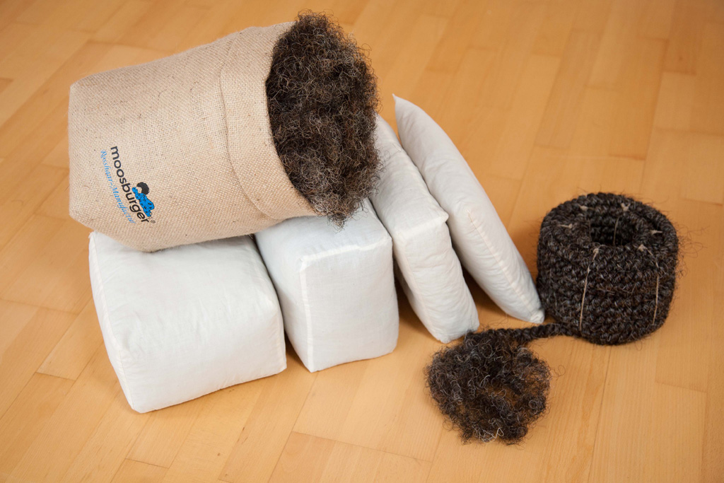 Die moosburger® Pferdeschweifhaare werden in gleichschweren Würfelkissen gefüllt. Durch das Vertauschen der einzelnen Kissen vom Gesäßbereich in den Kopf- und Fußbereich hat das Haar die Möglichkeit zu regenerieren.